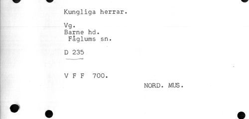 //// Kungliga herrar. //// Vg. //// Barne hd. //// Fåglums sn. //// D 235 //// V F F 700. //// NORD. MUS. ////