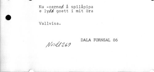 //// Ku -oeme%f å spilåpipa //// e ly^ goett i mit öra //// Vallvisa. //// } DALA FORNSAL 86 //// ^_____ ......r ////