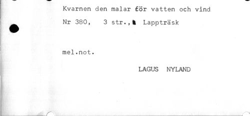 //// Kvarnen den malar för vatten och vind //// ; Nr 380, 3 str.,h Lappträsk //// mel.not. //// LAGUS NYLAND //// _^ __r-" ////