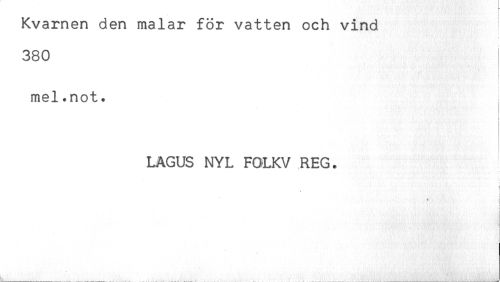 //// Kvarnen den malar för vatten och vind //// 380 //// ! //// mel.nct. //// LAGUS NYL FOLKV .REG. //// i //// ! //// < //// i //// < //// < ////
