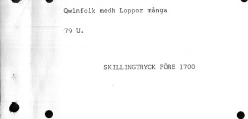 //// Qwinfolk medh Loppor många //// 79 U. //// SKILLINGIRYCK FÖRE 1700 //// * ////
