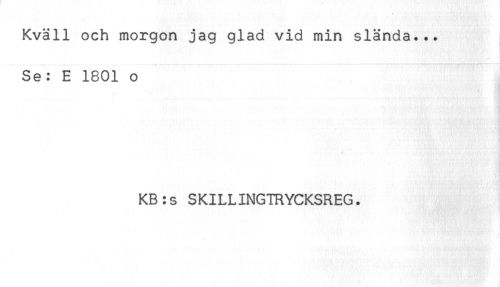 //// Kväll och morgon jag glad vid min slända... //// Se: E 1801 o //// KB:s SKILLINGTRYCKSREG. ////