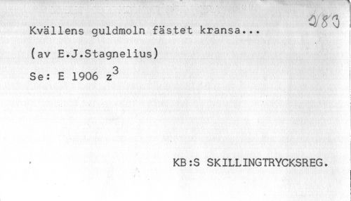//// . -......- -'<-. ' - < < -....... y ,. , .r //// <? ^ i //// Kvällens guldmoln fästet kransa... //// (av E.J.Stagnelius) //// : //// : //// Se: E 1906 z^ //// - //// ! //// ) //// : //// i //// * i //// KB:S SKILLINGTRYCKSREG. ////