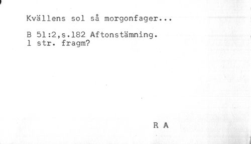 //// Kvällens sol så morgonfager... //// B 51:2,s.l82 Äf tonstämning. , //// 1 str. fragm? //// * //// R A ////