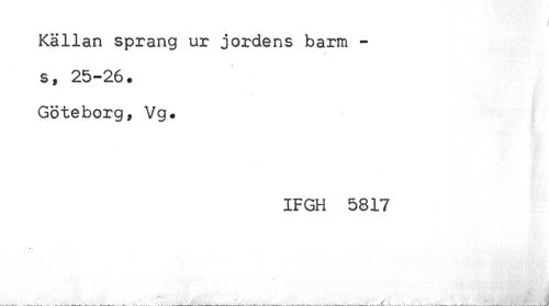 //// Källan sprang ur jordens barm - //// s, 25-26. //// Göteborg, Vg. //// IFGH 5817 //// ^ ^ ^ - . ^ ^ ' J ////
