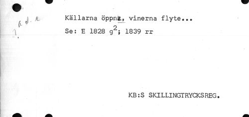 //// å Källarna öppngL, vinerna flyte**. //// ! jjL //// ^ Se: E 1828 g^; 1839 rr //// $ //// * KB:S SKILLINGTRYCKSREG. //// * ////