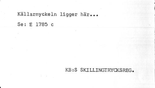 //// Källarnyckeln ligger har... //// Se: E 1785 c //// .. ... ? //// i //// : //// i //// - //// j //// - //// KB:S SKlLLINGTRYCKSREG. //// k ////