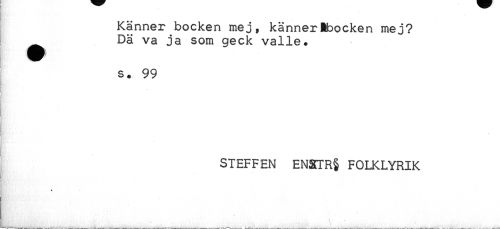 //// & //// Känner bocken mej, kännerEbocken mej? //// Dä va ja som geck valle. //// n H' //// . //// s. 99 //// i //// ^ * //// STEFFEN ENSTTR§ FOLKLYRIK //// * //// ** \ ////