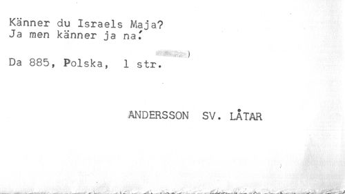 //// Känner du Israels Maja? //// Ja men känner ja na^ //// Da 885, Polska, 1 str. //// ANDERSSON SV. LÅTAR //// //// /— A. t ..! --.^.^-L .... A. - — ^ ////