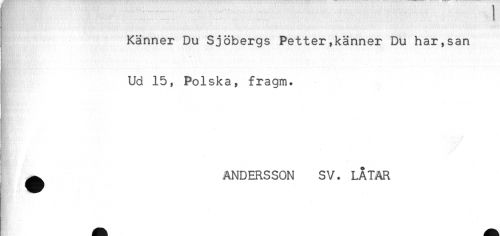 //// Känner Du Sjöbergs Petter,känner Du har,san //// Ud 15, Polska, fragm. //// * //// J //// ^ ANDERSSON SV. LÅTAR ////