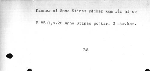 //// Känner ni Anna Stinas pdjkar kom får ni se //// B 55:1,s.28 Anna Stinas pojkar. 3 str.kom. //// RA ////