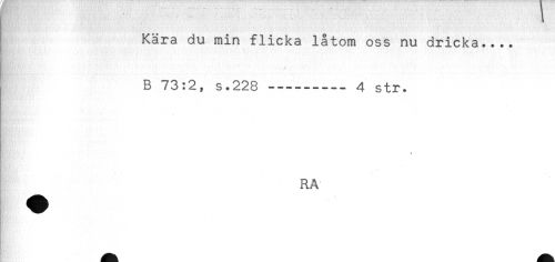 //// Kära du min flicka låtom oss nu dricka____ //// B 73:2, s.228 ---- 4 str. //// RA ////