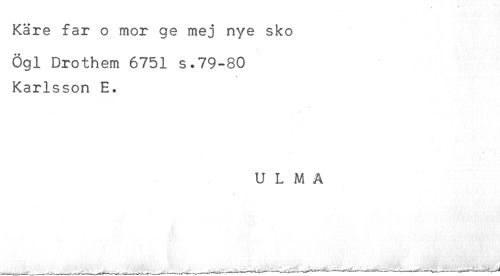 //// Käre far o mor ge mej nye sko //// Ögl Drothem 6751 s.79-80 //// * //// Karlsson E. //// U L M A ////