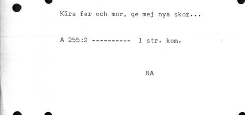 //// H y) //// Kära far och mor, ge mej nya skor... //// . //// A 255:2 ----- 1 str. kom. //// RA ////