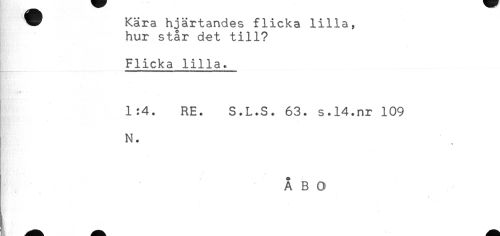 //// V Kära hjärtandes flicka lilla, //// hur står det till? //// Flicka lilla. //// 1:4. RE. S.L.S. 63. s.l4.nr 109 //// N. ////
