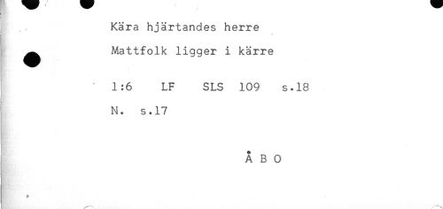 //// I ,, Kära hjärtandes herre //// - //// ^^ Mattfolk ligger i kärre //// * 1:6 LF SLS 109 s.18 //// N. s.17 //// ÅBO //// + //// ** ,* ////