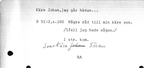 //// Käre Johan,jag går hädan... //// j B 51:2,s.l80 Några råd till min käre son. //// /ifall jag hade någon. //// /1 str. kom. //// RA ////