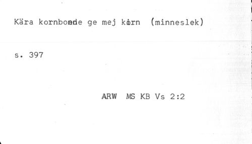 //// Kära kornboade ge mej k&rn (minneslek) //// s. 397 //// t //// ARW MS KB Vs 2:2 ////