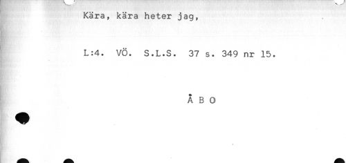 //// * //// Kära, kära heter jag, //// L:4. VÖ* S.L.S. 37 s. 349 nr 15. //// V //// Å B Q ////