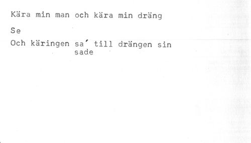 //// Kära min man och kära min dräng //// Se //// Och käringen sa' till drängen sin //// sade //// t ////