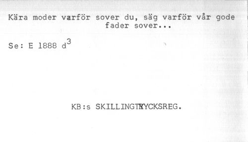 //// Kära moder varför sover du, säg varför vår gode //// fader sover... //// Se: E 1888 d^ //// KB:s SKILLINGTRYCKSREG. ////