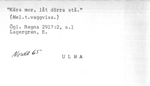 //// "Kära mor, låt dörra stå." //// (Mel.t.vaggvisa.) //// Ögl. Regna 2917:2, s.l //// Lagergren, E. //// ULMA ////