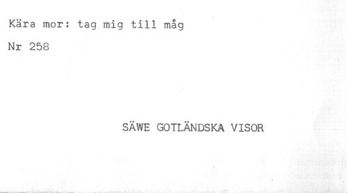 //// Kära mor: tag mig till måg //// Nr 258 //// SÄWE GOTLÄNDSKA VISOR //// t //// -____ . . —. .... ////