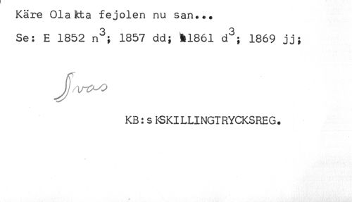 //// Kare Olakta fejolen nu san... //// Se: E 1852 n^; 1857 dd; M861 d^; 1869 jj; //// KB: s ^SKILLINGTRYCKSREG. //// * ... i' '.''.'i,.:'''*'':''''''' ' ////