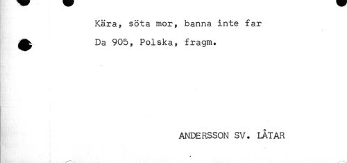 //// Kära, söta mor, banna inte far //// Da 905, Polska, fragm. //// ANDERSSON SV. LÅTAR ////