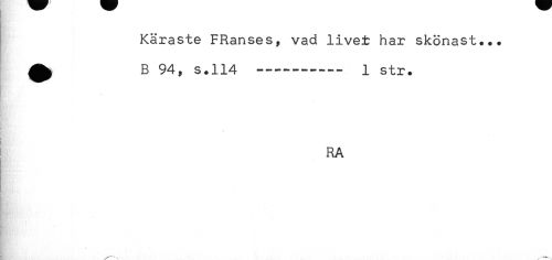 //// Käraste FRanses, vad livet har skönast... //// ^ B 94, s.114 -...- 1 str. //// 6 //// RA //// ' //// ) ,—-- ////