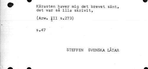 //// Kärasten haver mig det brevet sänt, //// det var så illa skrivit, //// (Arw. pi s.273) //// * //// v //// s.47 //// STEFFEN SVENSKA LÅTAR ////