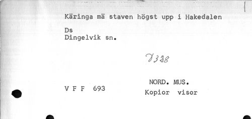 //// Käringa mä staven högst upp i Hakedalen //// ' Ds //// Dingelvik sn. //// NORD. MUS. //// ^ V F F 693 ^ . //// ^^ Kopior visor //// ) ////
