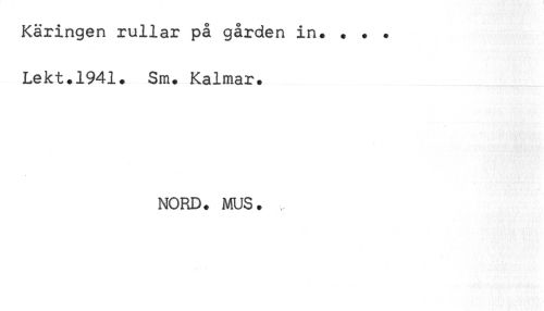 //// Käringen rullar på gården in. . . . //// Lekt.1941. Sm. Kalmar. //// MORD. MUS. ////
