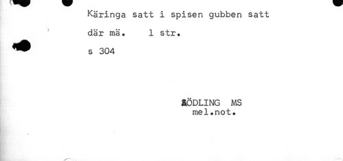 //// Käringa satt i spisen gubben satt //// där mä. 1 str. //// s 304 //// &ÖDLING MS //// mel.not. //// w ////