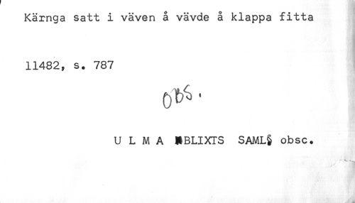 //// Kärnga satt i väven å vävde å klappa fitta //// 11482, s. 787 //// U L M A EBLIXTS SAML§ obsc. ////