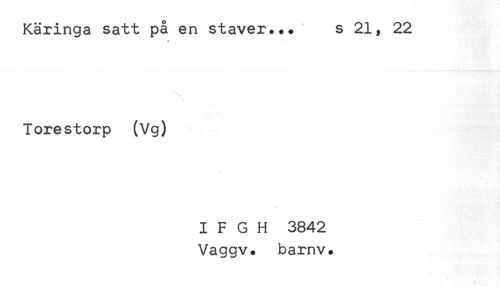 //// Käringa satt på en staver.** s 21, 22 //// * //// Torestorp (Vg) //// I F G H 3842 //// Vaggv* bamv* ////