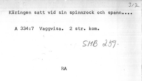 //// Käringen satt vid sin spinnrock och spann.... //// i //// ' //// ! //// - ... ! //// A 334:7 Vaggvisa. 2 str. kom. //// t //// ! //// RA ////