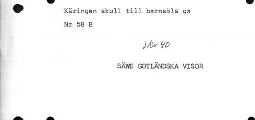 //// Käringen skull till barnsöls ga //// Nr 58 B //// ) Ar ^ //// SÄWE GOTLÄNDSKA VISOR //// <* ** ^ - ////