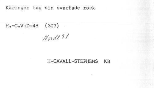 //// Käringen tog sin svarfade rock //// I //// i //// H.-C.V:D:48 (307) //// t //// H-CAVALL-STEPHENS KB //// t ////