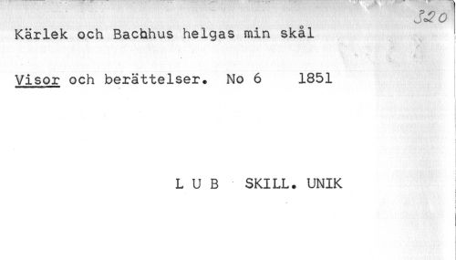 //// Kärlek och Bachhus helgas min skål //// Visor och berättelser. No 6 1851 //// ! //// < //// ! //// L U B SKILL. UNIK ////