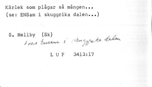 //// Kärlek som plågar sa mången... //// (se: ENSam i skuggrika dalen...) //// ! //// S. Mellby (Sk) //// L U F 3413:17 ////