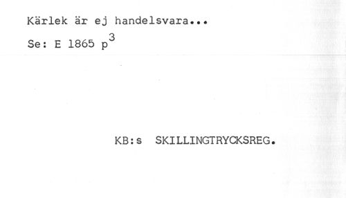 //// Kärlek är ej handelsvara... //// Se: E 1865 p^ //// KB:s SKILLINGTRYCKSREG. ////