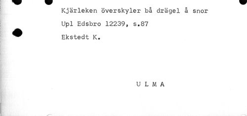 //// ' Kjärleken överskyler bå drägel å snor //// Upl Edsbro 12239, s.87 //// ^ Ekstedt K. //// : //// U L M A ////
