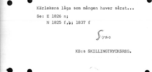 //// Kärlekens låga som mången haver sårat... //// Se: E 1826 n; //// N 1825 f,)?; 1837 f //// KB:s SKILLINGTRYCKSREG. ////