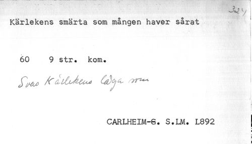 //// Kärlekens smärta som mången haver sårat //// i //// 60 9 str. kom. //// CARLHEIM-6. S.LM. L892 j //// a //// — ////