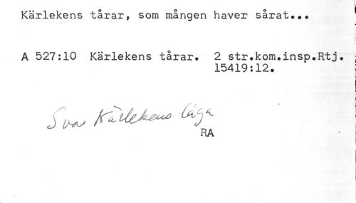 //// Karlekens tarar, som mangen haver sarat.*. //// * //// A 527:10 Kärlekens tårar. 2 str.kom.insp.Rtj* : //// 15419:12. } //// ! //// ! //// ) //// RA //// ! //// k ////