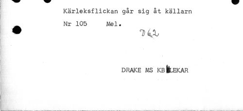 //// Kärleksflickan går sig åt källarn //// Nr 105 Mel. //// * //// < //// < //// ij //// Ms'- ^ //// j //// i //// DRAKE MS KB ttLEKAR //// - . ////