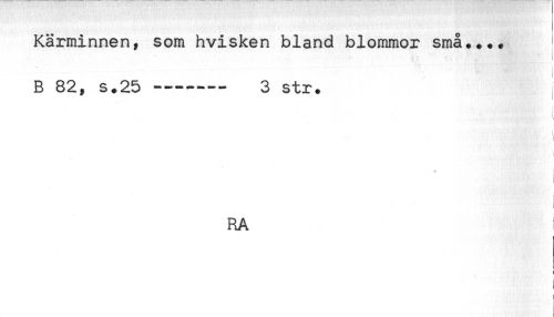 //// Kärminnen, som hvisken bland blommor små.... //// * //// B 82, s.25 —----- 3 str. //// ! //// i //// * //// RA //// i //// - ' f' < ////