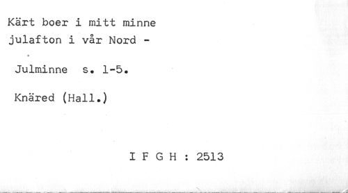 //// Kärt boer i mitt minne //// julafton i vår Nord - //// * //// Julminne s. 1-5. //// Knäred (Hall.) //// I F G H : 2513 ////