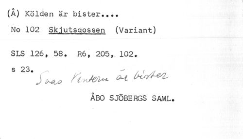 //// (Å) Kölden är bister.... i //// .-t. //// No 102 Skjutsgossen (Variant) //// SLS 126, 58. R6, 205, 102. //// ÅBO SJÖBERGS SAML. //// t ////